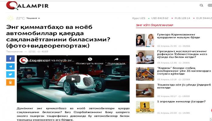 Özbəkistanın Qalampir.uz portalı Heydər Əliyev Mərkəzində nümayiş etdirilən klassik avtomobillər sərgisi ilə bağlı videoreportaj yayıb.