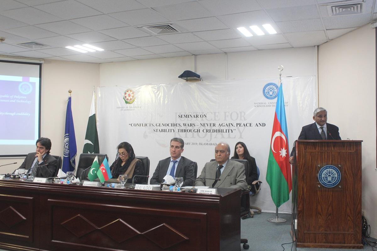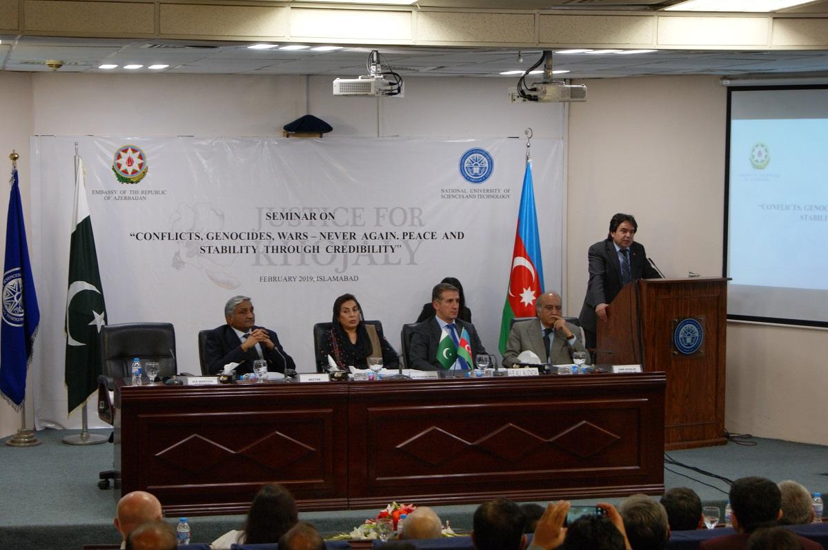 Xocalı soyqırımının 27-ci ildönümünə həsr olunmuş seminar Azərbaycanın Pakistandakı Səfirliyi və Pakistanın Milli Elmlər və Texnologiya Universiteti (NUST) ilə birgə İslamabad şəhərində təşkil edilib.