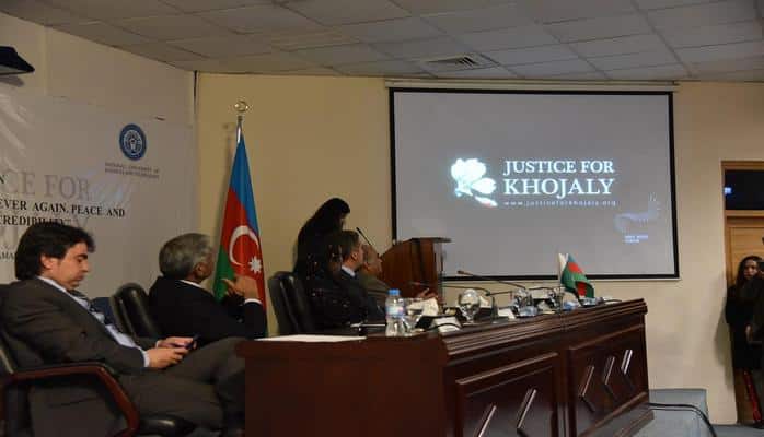 Azərbaycana məxsus Dağlıq Qarabağda Ermənistan tərəfindən aparılan işğalçılıq siyasətinin önəmli təzahürlərindən birinin ermənilərin Xocalıda törətdiyi soyqırım olduğunu ifadə edən İslamabad Strateji Tədqiqatlar İnstitutunun direktoru, sabiq səfir Xalid Mahmud BMT Təhlükəsizlik Şurasının müvafiq qətnamələrinin Ermənistanın işğal etdiyi Azərbaycan torpaqlarını qeyd-şərtsiz tərk etməsini tələb etdiyini, lakin Ermənistanın buna məhəl qoymadığını diqqətə çatdırıb. O, beynəlxalq hüququn müəyyən etdiyi tərifə əsasən, heç bir fərqləndirmə aparılmadan Ermənistanın Xocalıda Azərbaycanlıları kütləvi şəkildə qətlə yetirməsinin soyqırım olduğunu, özünün Azərbaycana səfəri zamanı Quba məzarlığında “Böyük Ermənistan” xəyalları ilə ermənilərin həyata keçirdiyi soyqırım siyasətinin şahidi olduğunu qeyd edib. Direktor, həmçinin Pakistanın Dağlıq Qarabağ məsələsində Azərbaycanı həmişə dəstəklədiyini, Pakistan Milli Assambleyası və Senatının xarici işlər üzrə komitələrinin Xocalıda Ermənistanın soyqırım törətdiyini tanıyan və Ermənistanın işğal etdiyi Azərbaycan torpaqlarını tərk etməsini tələb edən qətnamələr qəbul etdiyini iştirakçıların nəzərinə çatdırıb.