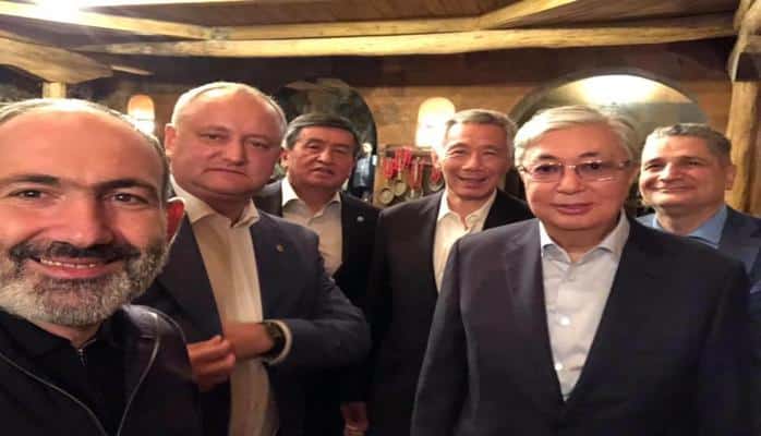 Publika.az xəbər verir ki, selfidə Rusiya lideri Vladimir Putin, İran prezidenti Həsən Ruhani, Ermənistanın baş naziri Nikol Paşinyan, Qırğızıstan prezidenti Suronbay Cenbekov, Moldova prezidenti İqor Dodon, Qazaxıstanın dövlət başçısı Qasım Comərd Tokayev yer alıb.