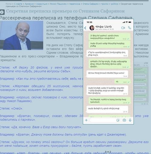 Beləliklə, artıq sosial şəbəkələrin erməni istifadəçiləri Paşinyanı dövlət əleyhinə alçaqlıqda ittiham edirlər. Yazışmalardan belə qənaətə gəlmək olar ki, Paşinyan və çevrəsi baş nazir kreslosuna heç bir təhdid yaranmaması üçün dövlətin pullarını kimə gəldi verirlər. Məlum olur ki, Nikol Paşinyan hər şeyi “ümumerməni ded”i Levon Ter-Petrosyanla razılaşdırır. Paşinyanın yaxın çevrəsi isə onu psixi cəhətdən sağlam olmayan şəxs kimi tanıyır.