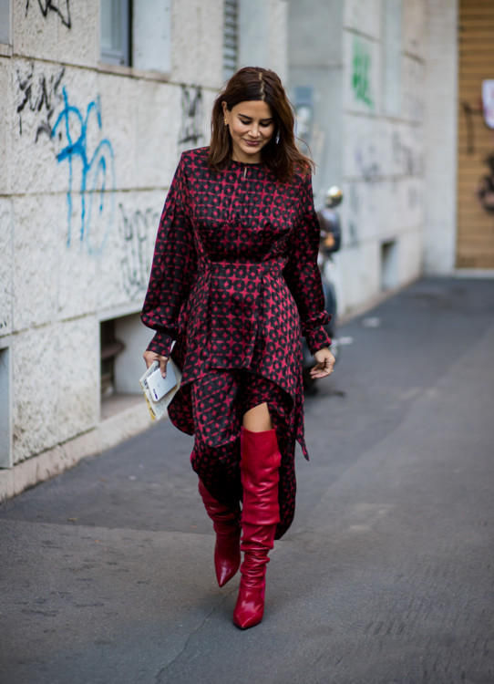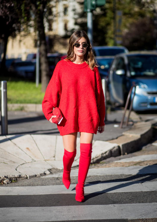 Qarderobunu soyuq havanın tutqun rənglərindən xilas etmək istəyənlər üçün qırmızı çəkmə dəbinə aid bir neçə nümunə seçmişik.