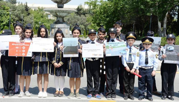 Aksiya çərçivəsində polis forması geyinən uşaqlar – yol polisinin gənc köməkçiləri hərəkət iştirakçılarını müxtəlif devizlər altında yollarda intizamlı olmağa dəvət ediblər. Uşaqlar yol hərəkəti qaydalarını pozan sürücüləri saxlayaraq, onlara yol polisi əməkdaşlarının tövsiyəsi ilə məsləhətlər veriblər.