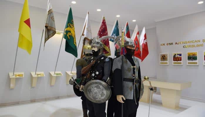 Məlumat verilib ki, Bayraq Muzeyinin inşasına ötən il başlanıb və bu ilin mayında başa çatdırılıb. Ümumi ərazisi 400 kvadratmetr olan muzey binası ikimərtəbəli olmaqla sərgi zalından, inzibati və yardımçı otaqlardan ibarətdir. Muzeyin sərgi zalında ümumilikdə 6 bölmə yaradılıb. Burada Azərbaycan xanlıqlar dövrünün xəritəsi, orta əsrlərə aid döyüşçüləri əks etdirən manikenlər, xanlıqların istifadə etdiyi bayraqlar, XIX əsr Azərbaycan şəhərlərinin gerbləri, qədim metal sikkələr, kağız pullar sərgilənir. Bundan əlavə, Azərbaycan Xalq Cümhuriyyəti, Azərbaycan SSR və müstəqillik dövrlərində qəbul edilmiş konstitusiyalar, gerblər, bayraqlar, Silahlı Qüvvələrin geyim formaları, Ümummilli Liderin andiçmə mərasimindən fotoşəkillər, Ulu Öndərin dövlət rəmzləri haqqında kəlamları, Prezident İlham Əliyevin andiçmə, Bayraq Meydanının açılışı mərasimlərində çəkilmiş fotoşəkilləri, poçt markaları, orden və medallar muzeyin ekspozisiyasına daxildir. Bayraq Muzeyi ümummilli lider Heydər Əliyevin adını daşıyan mədəniyyət və istirahət parkında yaradılıb və burada hündürlüyü 56 metr olan Dövlət Bayrağı ucaldılıb, ətrafında fəvvarə kompleksi inşa edilib, postamentdə Azərbaycan Respublikasının gerbi, himni, xəritəsi əks olunub.
