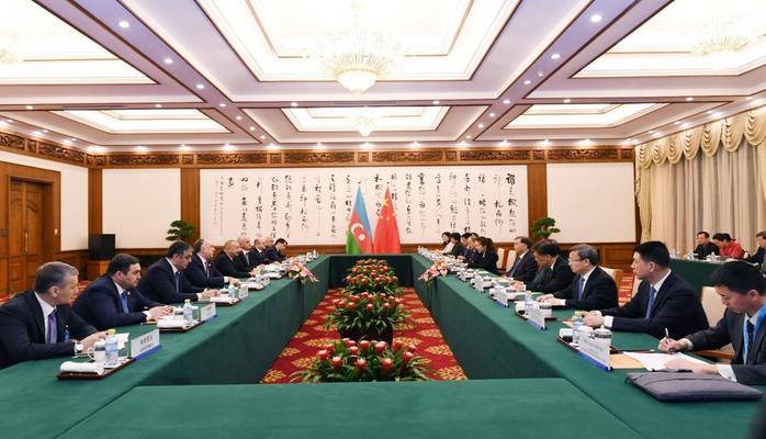 Prezident İlham Əliyev ölkələrimiz arasında bütün istiqamətlərdə əməkdaşlığın inkişafında müsbət dinamikanın olduğunu bildirib. Azərbaycanın Çin dövləti başçısının təşəbbüskarı olduğu “Bir kəmər, bir yol” layihəsinə mühüm əhəmiyyət verdiyini, bu təşəbbüsü dəstəkləyən ilk ölkələrdən olduğunu qeyd edib. Bildirib ki, Azərbaycanda müasir nəqliyyat infrastrukturunun yaradılmasına xüsusi önəm verilir. Prezident İlham Əliyev ikinci “Bir kəmər, bir yol” Beynəlxalq Forumuna dəvətə görə təşəkkür edib, bunu Azərbaycana olan hörmətin və dostluğun nümunəsi kimi qiymətləndirib. Dövlət başçısı bu səfərinin Azərbaycanla Çin arasında əməkdaşlığın inkişafına ciddi təkan verəcəyini bildirib.