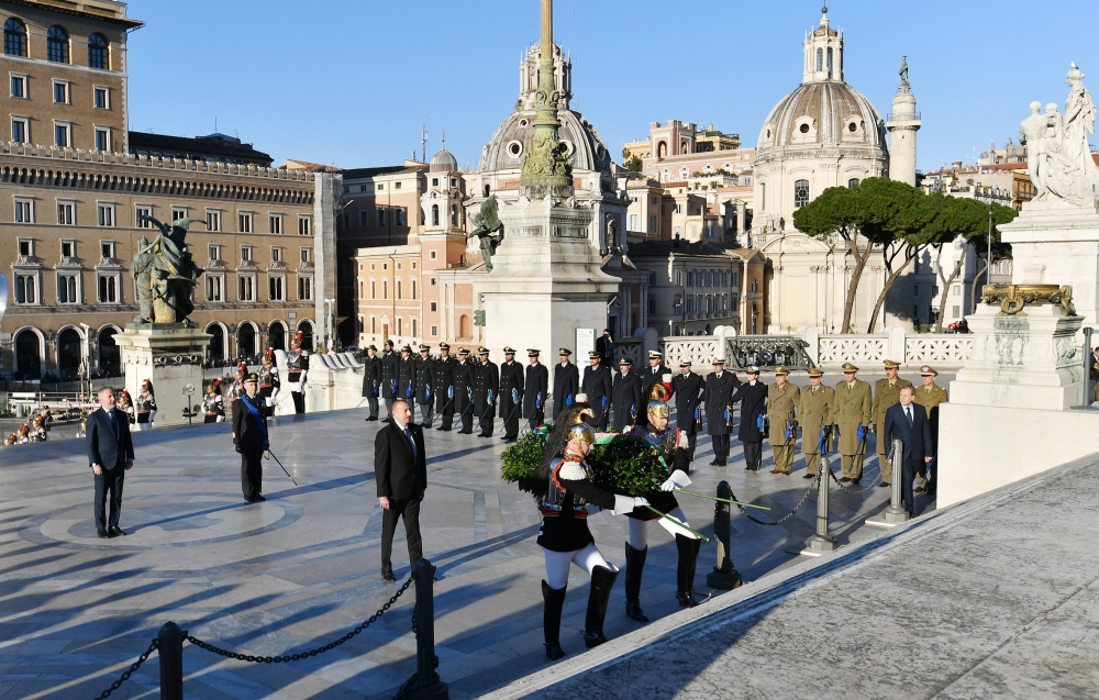 İtaliya Respublikasında dövlət səfərində olan Azərbaycan Respublikasının Prezidenti İlham Əliyev və birinci xanım Mehriban Əliyeva fevralın 20-də Romadakı “Altare della Patria” memorial kompleksində naməlum əsgər abidəsini ziyarət ediblər.
