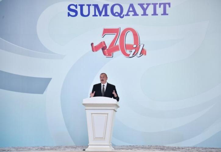 Prezident İlham Əliyev Sumqayıtın 70 illiyinə həsr olunmuş tədbirdə iştirak edib
