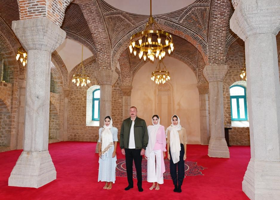 Azərbaycan Respublikasının Prezidenti İlham Əliyev, birinci xanım Mehriban Əliyeva, qızları Leyla Əliyeva və Arzu Əliyeva mayın 13-də Şuşada Yuxarı Gövhərağa məscidində olublar.