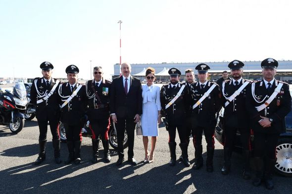AZƏRTAC xəbər verir ki, Romanın “Fiumicino” Beynəlxalq Hava Limanında dövlətimizin başçısının şərəfinə fəxri qarovul dəstəsi düzülüb.