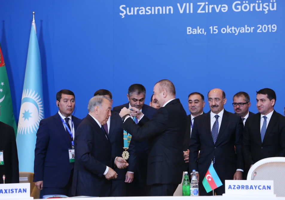 Prezident İlham Əliyev Zirvə Görüşündə çıxış edib. Sonra dövlət başçısı “Türk dünyasının Ali Ordeni”ni Qazaxıstan Respublikasının birinci Prezidenti, Türkdilli Dövlətlərin Əməkdaşlıq Şurasının fəxri sədri Nursultan Nazarbayevə təqdim edib.