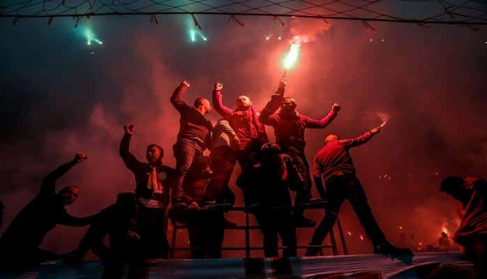 Azarkeşlər saat 17.30-dan stadiona buraxılıb. Azarkeşlərin coşğusu 19.05-ci dəqiqədə daha da artıb. Təlim-məşq toplantısı zamanı azarkeşlərin yandırdığı məşəllər futbolçulara çətin anlar yaşadıb.