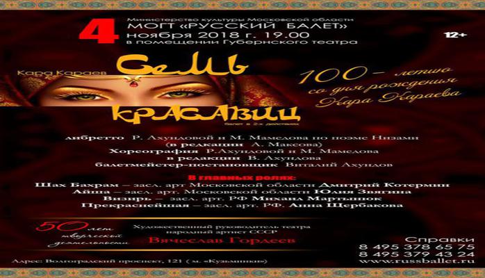 Mədəniyyət Nazirliyindən Trend-ə verilən məlumata görə, yubiley tədbirləri çərçivəsində Rusiya Federasiyası Mordova Respublikasının Dövlət Musiqili Teatrının təşəbbüsü və Mədəniyyət Nazirliyinin maliyyə dəstəyi ilə Saransk şəhərində Qara Qarayevin “Yeddi gözəl” baleti səhnələşdirilib. Tamaşanın premyerası 16 sentyabr 2018-ci il tarixində baş tutub. Baletsevərlərin marağına səbəb olan tamaşa gənc və istedadlı azərbaycanlı dirijor Orxan Həşimovun rəhbərliyi ilə Saransk tamaşaçılarına yenidən təqdim olunub.