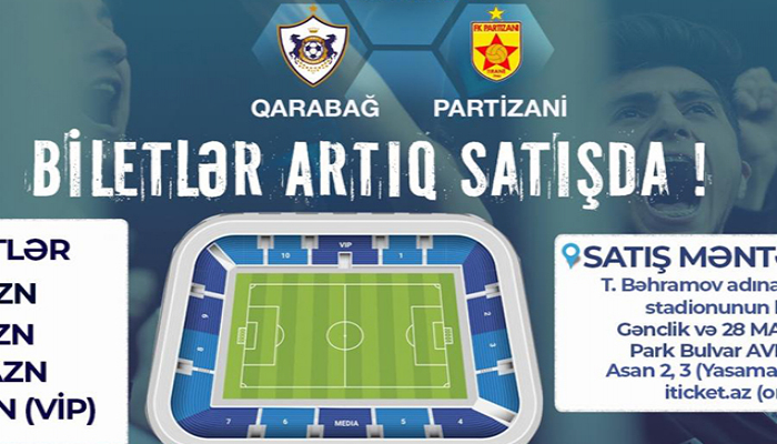 “Qarabağ” Çempionlar Liqasının I təsnifat mərhələsinin “Partizani” ilə cavab oyununun biletlərini satışa çıxarıb.
