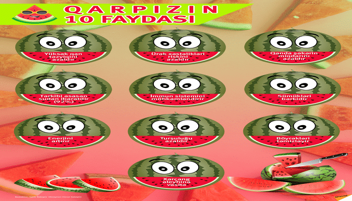 İnsanlar hələ qədim zamanlardan qarpızın faydaları barədə bilirlər. Qarpız susuzluğu söndürür, artıq mayeni orqanizmdən çıxarır, enerjini artırır və immunitetin yüksəlməsinə kömək edir.