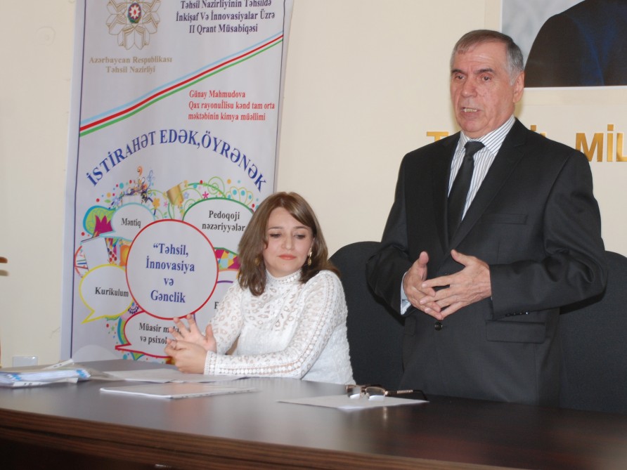Sonra layihə rəhbəri, Qax rayonu İlisu kənd tam orta məktəbin kimya müəllimi Günay Mahmudova layihə çərçivəsində görülən işlər barədə məlumat verib. Bildirib ki, üç ay davam edən “Təhsil, innovasiya və gənclik” layihəsinin mövzusu pedaqoji işçilərin peşəkarlıq səviyyəsinin yüksəldilməsi ilə bağlı olub. Layihənin seçim turunda iştirak edən gənc müəllimlərin yaradıcılıq xüsusiyyətlərini təyin etmək, əməkdaşlıq imkanlarının artırılması üçün səmimi və rahat öyrənmə mühitini təşkil etmək məqsədilə müxtəlif görüşlər, seminarlar, “dəyirmi masa”lar keçirilib. Layihənin icra planında nəzərdə tutulan tədbirlərə uyğun olaraq, iştirakçılar üçün müxtəlif mövzularda təlimlər keçirilib, gəzinti turları, həmçinin İlisu kəndindəki “Uludağ” istirahət mərkəzində yay düşərgəsi təşkil olunub.