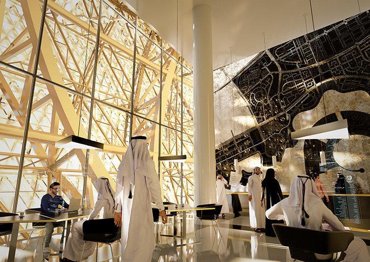 Arenanın qızıl fasadı ərəb memarlığını və bölgənin sənət əsərlərini simvollaşdırır.