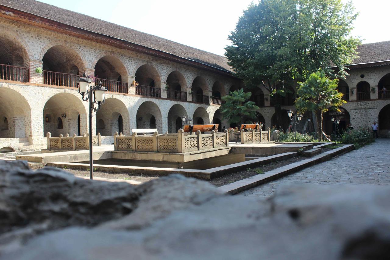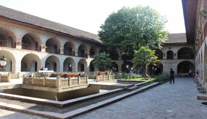 Həyətdə hazırda muzeylər, əl işləri satılan mağazalar, Şəki yeməkləri və digər milli yeməklər servis edən kafe fəalliyyət göstərir.