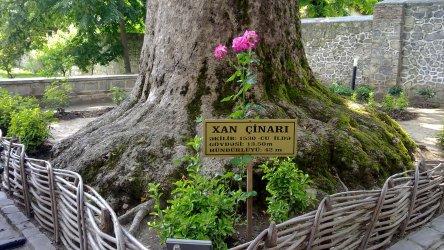 Sarayın qarşısındakı hovuzun hər iki tərəfində əkilmiş xan çinarlarının 500-ə yaxın (1530-cu ildə əkilib) yaşı var. Gövdəsi 13.50, hündürlüyü 42 metrdir. Çinarlar "Qırmızı kitab"a salındığından onları kəsmək qadağandır.