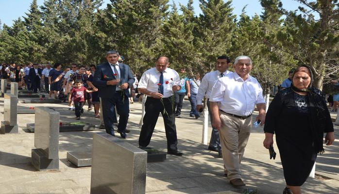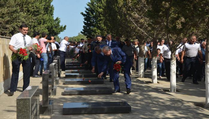 Tədbir iştirakçıları əvvəlcə “Şəhidlər xiyabanı”nı ziyarət edib, qəhrəman Vətən övladlarının məzarları üzərinə tər qərənfillər düzüblər.