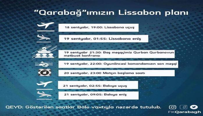 Qeyd edək ki, "Sportinq" - "Qarabağ" görüşü sentyabrın 20-i Bakı vaxtı ilə 23:00-da başlayacaq.
