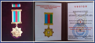 Ölkəmizdə sabitliyin və asayişin qorunmasında, cinayətkarlığa və onun hər cür təzahürlərinə qarşı mübarizədə üzərinə düşən vəzifələri bu gün də yüksək peşəkarlıqla yerinə yetirən, ictimai təhlükəsizliyin təmin olunmasında müstəsna xidmətlər göstərən Azərbaycan polisinin 100 illiyi ilə bağlı medalla təltif olunmaqdan qürur duyuram.