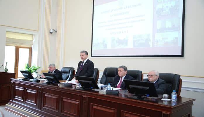 Məruzə dinlənildikdən sonra müzakirə aparılıb, suallar cavablandırılıb. Rəyasət Heyətinin qərarı ilə Humanitar Elmlər Bölməsinin 2018-ci ildəki elmi və elmi-təşkilati fəaliyyətinin yekunları haqqında hesabatı təsdiq edilib. Ümummilli lider Heydər Əliyevin siyasi hakimiyyətə gəlməsinin 50 illik yubileyi ilə bağlı olaraq "Heydər Əliyev və Azərbaycan humanitar elmi" monoqrafiyasının hazırlanması, eləcə də Azərbaycan Respublikası Prezidentinin "Böyük Azərbaycan şairi İmadəddin Nəsiminin 650 illik yubileyinin qeyd edilməsi haqqında" və 2019-cu ilin "Nəsimi ili" elan edilməsi, "Cəlil Məmmədquluzadənin 150 illik yubileyinin qeyd edilməsi haqqında" sərəncamlarının, Azərbaycan Respublikası Nazirlər Kabinetinin Sərəncamı ilə təsdiq edilmiş "Azərbaycan dilinin saflığının qorunması və dövlət dilindən istifadənin daha da yaxşılaşdırılması ilə bağlı Tədbirlər Planı"nın icrası, multidissiplinar tədqiqatların aparılması, təhsil, kadr hazırlığı və digər istiqamətlərdə müvafiq tapşırıqlar verilib.
