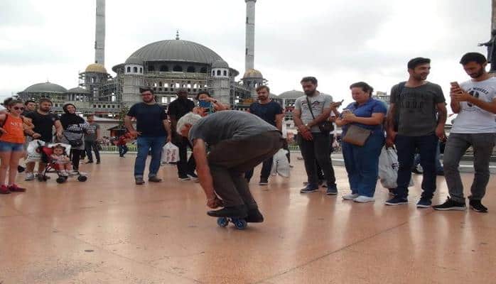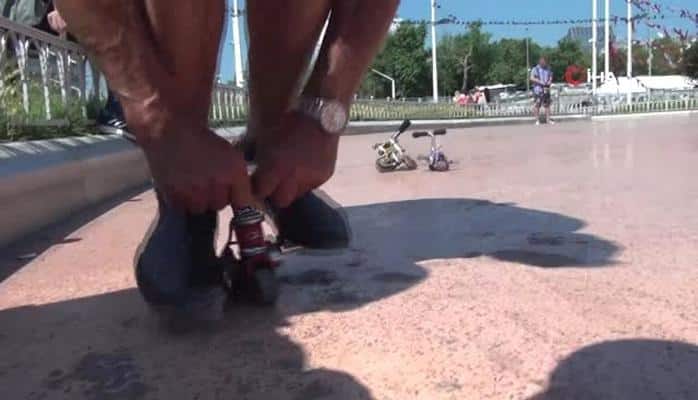 Dünyanın müxtəlif ölkələrinə səyahət edən Sergey Daskevşiq velosipedlərini sərgiləyir. Taksim meydanında 8.5 sm-lik velosipedləri görən normal velosipedli vətəndaşlar Rus turistə yarışmaq təkilf edib. Rus turist 8.5 sm-lik velosipedlə yarışın qalibi olub.