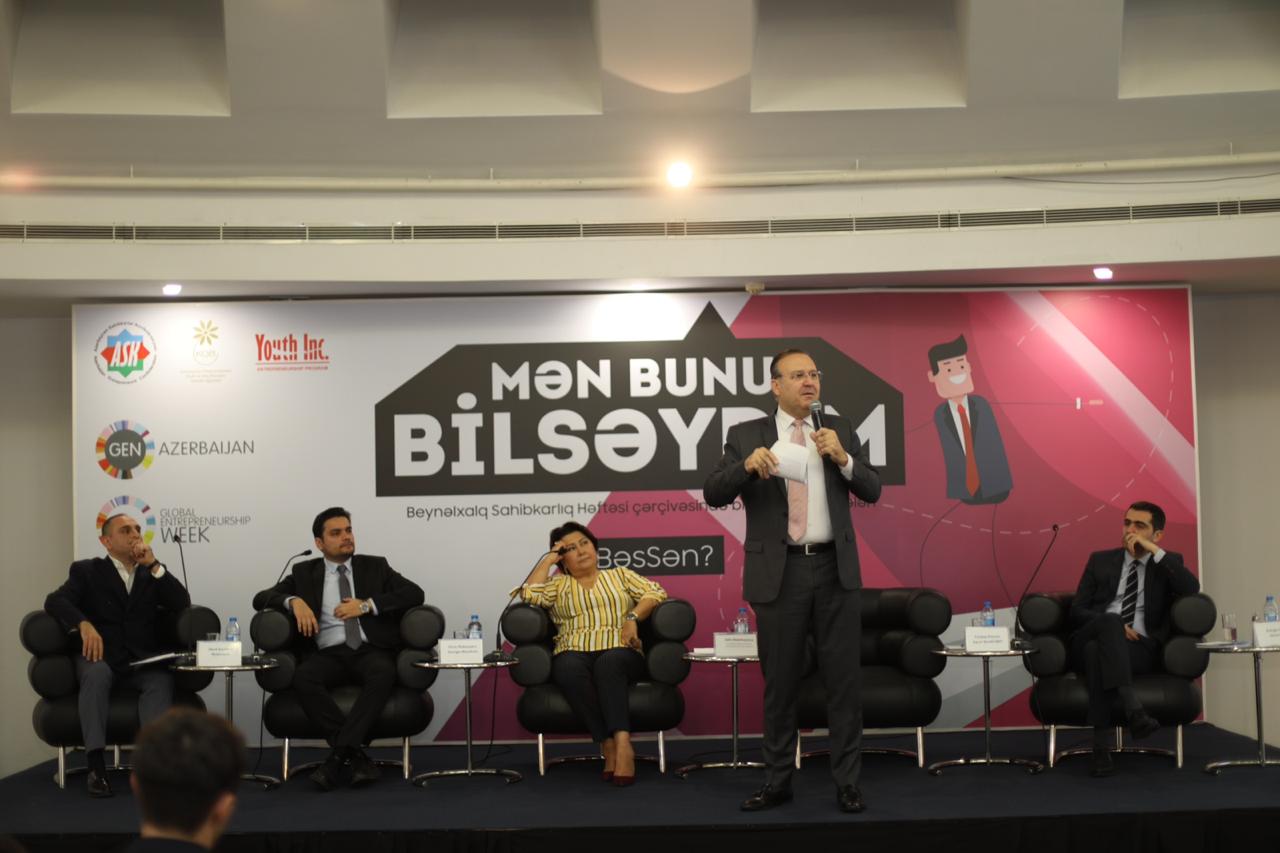 “Qlobal Sahibkarlıq Həftəsi” çərçivəsində Azərbaycan Sahibkarlıq Konfederasiyası, Azərbaycan Respublikasının Kiçik və Orta Biznesin İnkişafı Agentliyi və “Youth Inc.” Sahibkarlıq Proqramı tərəfdaşlığı və Azərbaycan İnvestisiya Şirkətinin təşkilatı dəstəyi ilə 4 sahibkarın panel müzakirələrində çıxış etdiyi “Mən bunu bilsəydim” adlı tədbir yekunlaşıb.