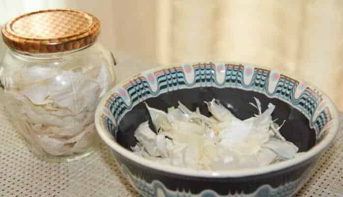 Diqqət: yalnız təbii, torpaqda yetişən, yerli sarımsağın qabığını sitifadə etmək lazımdır. Marketlərdə satılan Çin və ya digər ölkə istehsalı qabığı çox ağ, hamar sarımsaqlar yaramır. Onların qabığında zərərli maddə çoxdur.