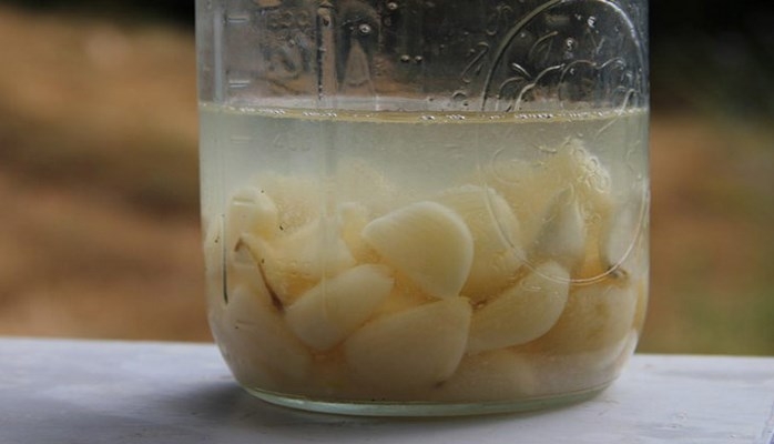 Sarımsağı təmizləyin, əzin, üzərinə soyuq qaynanmış su tökün, 1 həftə sərin yerdə saxlayın (vaxtaşırı olaraq qarışdırın). 1 həftədən sonra məhlulu yaxşı süzün və sonra qapağı kip bağlı bankada soyuducuda saxlayın.