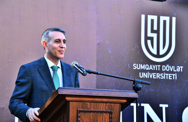 Müstəqil həyata mütəxəssis kimi vəsiqə alan məzunları təbrik edən Sumqayıt şəhər İcra Hakimiyyəti başçısının birinci müavini Teymur Səmədov şəhər İcra başçısı cənab Zakir Fərəcovun salamını çatdırdı, regionun davamlı inkişafına töhfə verən və şəhərimizin yeganə ali təhsil müəssisəsi olan SDU - nun fəaliyyətini və universitetdə yüksək səviyyəli kadr hazırlığının həyata keçirilməsinin təqdirəlayiq hal olduğunu bildirdi. Bu uğurların təməlində ümummilli lider Heydər Əliyevin müəyyənləşdirdiyi və bu gün də Prezident İlham Əliyev tərəfindən aparılan gənclər siyasəti və eyni zamanda Birinci vitse-prezident Mehriban Əliyevanın təhsilə diqqət və qayğısı durur.