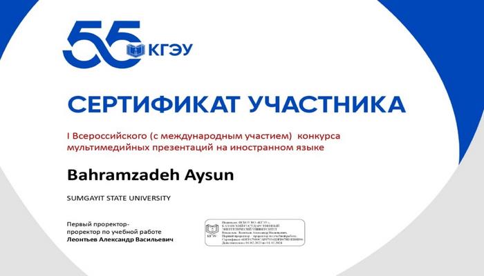 Kazan Dövlət Energetika Universitetinin 55 illik yubileyinə həsr olunmuş “Müasir dünyada yüksək texnologiyaların uğurları” adlı I Beynəlxalq olimpiada keçirilmişdir. MDB ölkələrindən 40, Rusiyadaxili isə 55 universitetin qatıldığı beynəlxalq olimpiadada Sumqayıt Dövlət Universitetinin 10 tələbəsi iştirak etmişdir.