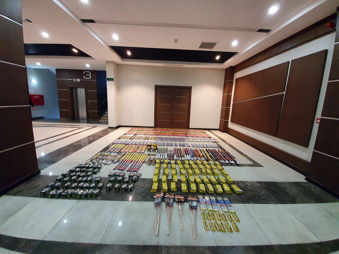 Baxış zamanı avtomobilin yük yerində və salonunda karton qutuların içərisində 6260 ədəd fişəng və pirotexniki vasitələr aşkarlanıb.