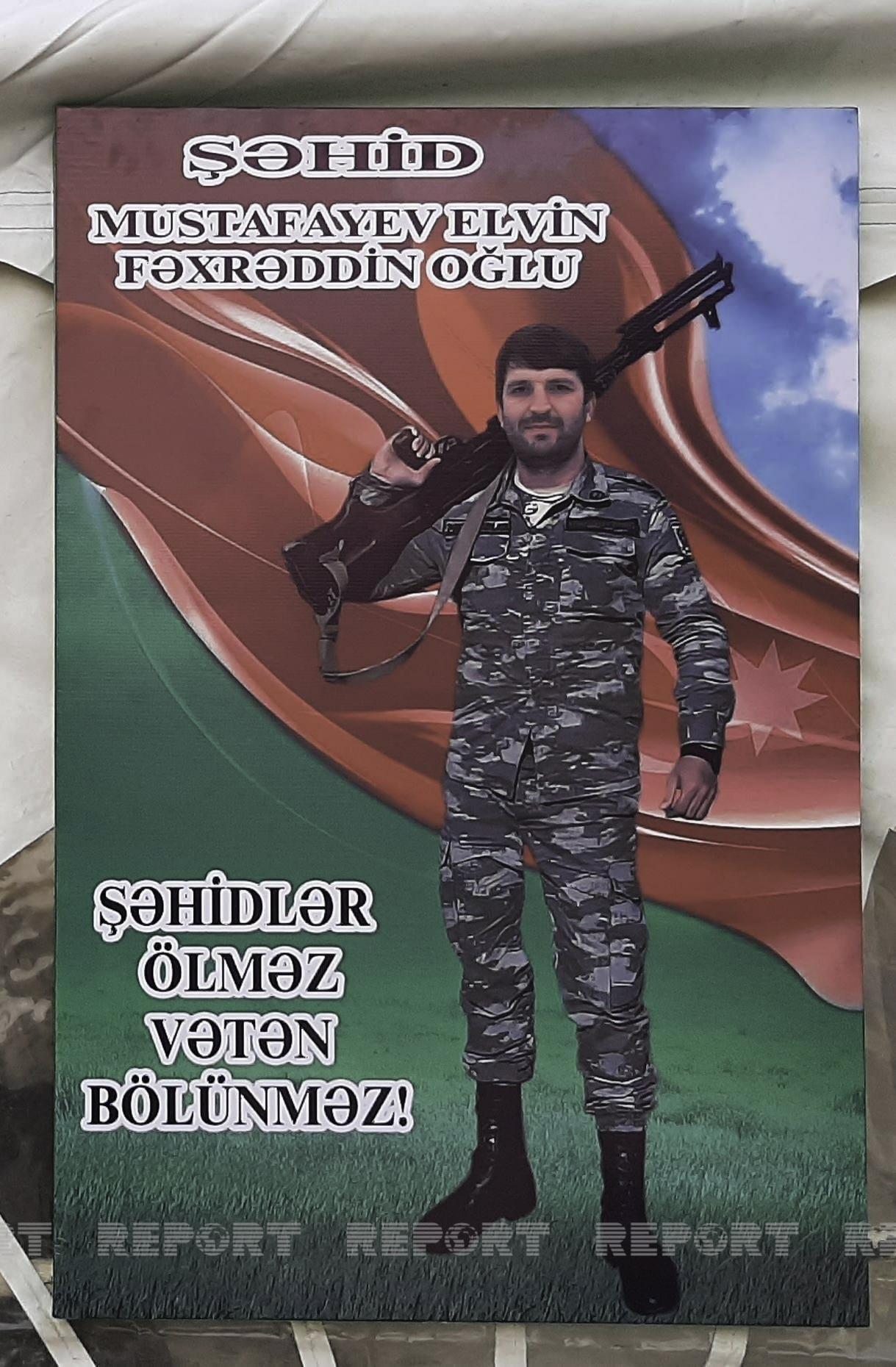 Ens.az Report-a istinadən xəbər verir ki, ötən ilin sentyabr ayının 27-də başlayan Vətən müharibəsi zamanı Murovdağ istiqamətində gedən döyüşlərdə qəhrəmancasına şəhid olan Gəncə şəhər sakini, 1992-ci il təvəllüdlü Elvin Fəxrəddin oğlu Mustafayevlə vida mərasimi keçirilir. Mərasimdə şəhidin yaxınları ilə yanaşı ictimaiyyət nümayəndələri, hərbçi yoldaşları və şəhər sakinləri iştirak edir.