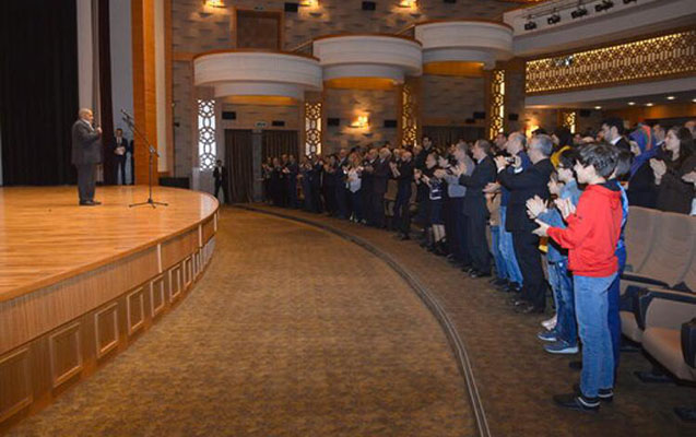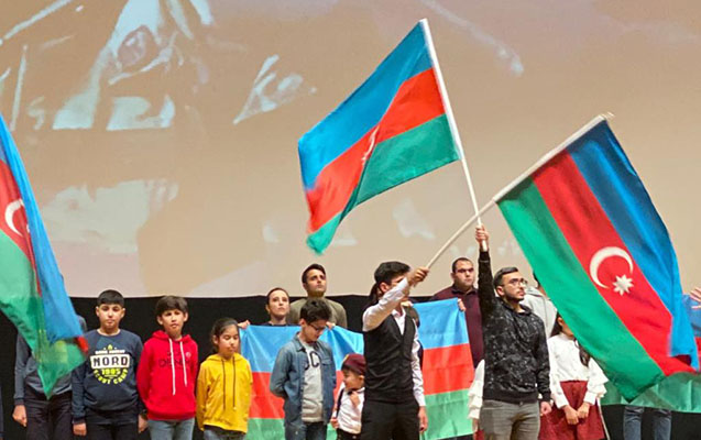 "Qafqazinfo" xəbər verir ki, tədbir şəhid polkovnikin üç övladının dövlət himnini canlı ifa etməsilə başlayıb.