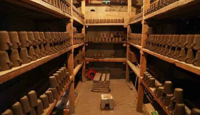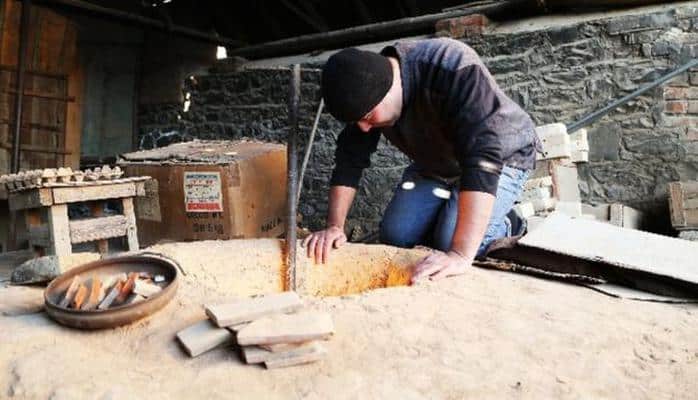 İsitmə piltələri qoyulan xüsusi otaqlarda təxminən on gün quruduqdan sonra, qablar kürədə bişirilir. Bişirilmə prosesi isə səhərdən gecə yarısına kimi davam edir.