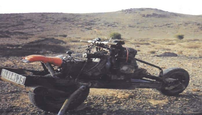 Avtomobildən motosikl hazırlamaq ideyasının özü dahiyanə, lakin çətin reallaşdıra bilən idi. Qarajın əvəzində parlaq günəş və zəhərli qum tufanları. Avtomobilinin kuzovunu gecə yatmaq üçün istifadə edirdi ki, orada küləkdən qorunmaq mümkün idi.