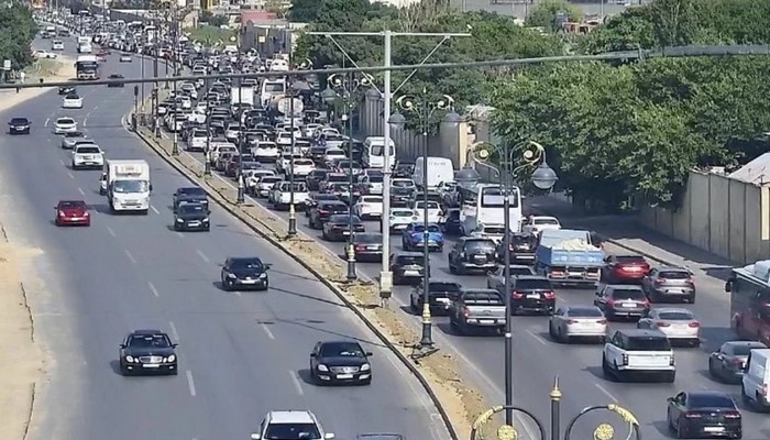 Bakının bir sıra yollarında nəqliyyatın hərəkətində sıxlıq yaranıb.