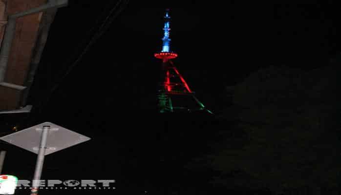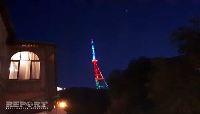 Azərbaycanın Respublika Günü münasibətilə Gürcüstanın paytaxtı Tbilisidə teleqüllə Azərbaycan bayrağının rəngləri ilə işıqlandırılıb.