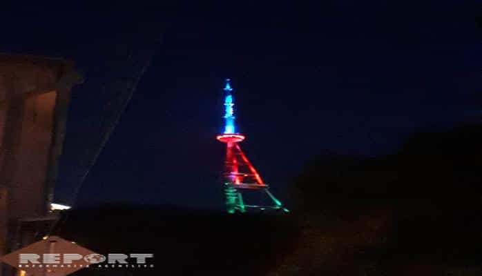 Tbilisidə teleqüllə Azərbaycan bayrağının rəngləri ilə işıqlandırılıb