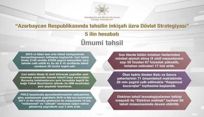 Təhsilin inkişafı üzrə Dövlət Strategiyasının 5 illiyi ilə bağlı infoqrafik məlumat açıqlanıb