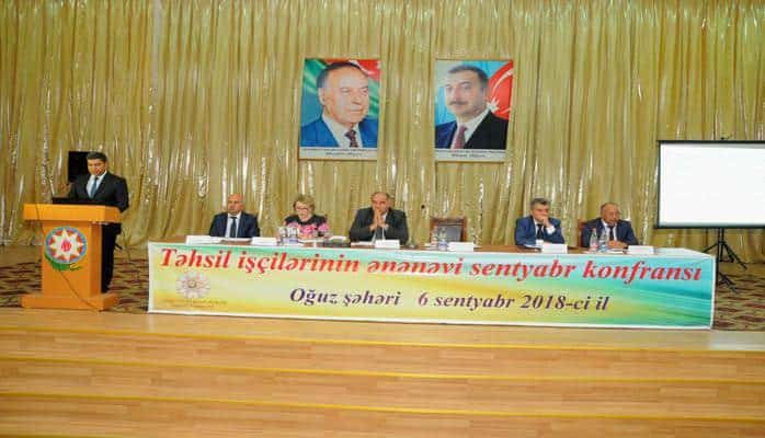 Rayon Mədəniyyət Mərkəzində keçirilən konfransda təhsil şöbəsinin müdiri Elçin Kərimovun 2017-2018-ci dərs ilinin yekunları və yeni dərs ilində qarşıda duran vəzifələrə dair hesabat məruzəsi dinlənilib. Bildirilib ki, Azərbaycan təhsilinin tərkib hissəsi olan Oğuz təhsili də son illər bütün əsas göstəricilər üzrə ölkə təhsilinin inkişafında ön sıralardadır. Ötən dövrdə rayonda təhsilin infrastrukturunun müasir tələblərə uyğun qurulması, təhsilin məzmununun yeniləşdirilməsi, keyfiyyətinin yüksəldilməsi, pedaqoji kadrlarla təminatının yaxşılaşdırılması, təhsil müəssisələrinin informasiya-kommunikasiya texnologiyaları ilə təmin edilməsi və digər istiqamətlər üzrə əhəmiyyətli nailiyyətlər əldə olunub.