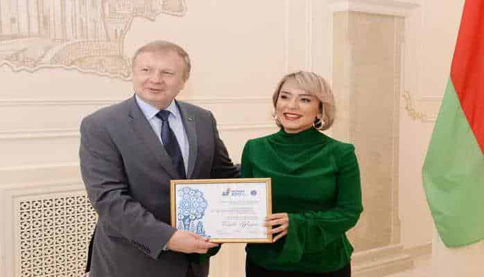 Axar.az xəbər verir ki, Belarusun Azərbaycandakı səfiri Gennadi Axramoviç müğənninin ölkənin həm yaradıcılıq, həm də idman sahələrində xidmətlərini yüksək qiymətləndirib. Diqqətə çatdırıb ki, “2019-cu il II Avropa Oyunlarının ulduz elçiləri” layihəsi bu möhtəşəm idman tədbirinin təbliğinə, Belarus sakinlərinin və bütün dünya ictimaiyyətinin dünya idmanı üçün bu cür əhəmiyyətli hadisəyə marağının artırılmasına yönəldilib. Səfir Minskdə keçiriləcək Avropa Oyunlarına hazırlıq işlərindən də danışıb.