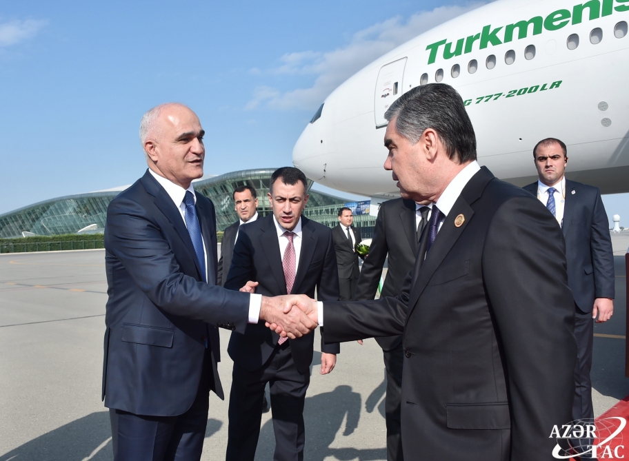 AZƏRTAC xəbər verir ki, Prezident Qurbanqulu Berdiməhəmmədovu Heydər Əliyev Beynəlxalq Aeroportunda Azərbaycanın Baş Nazirinin müavini Şahin Mustafayev, Xarici İşlər nazirinin müavini Mahmud Məmməd-Quliyev və digər rəsmi şəxslər qarşıladılar.