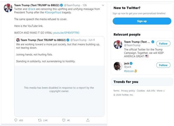 “Twitter” Trampın Corc Floydla bağlı videomüraciətini sildi
