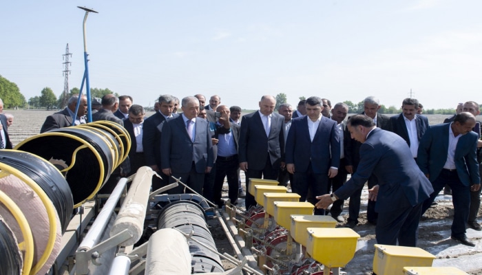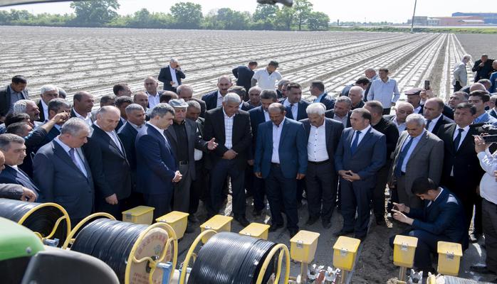 Daha sonra tədbir iştirakçıları Şirvan Təcrübə Stansiyasının torpaq sahəsində Çinə məxsus innovativ texnologiya əsasında pambıq səpini ilə əyani tanış olublar.
