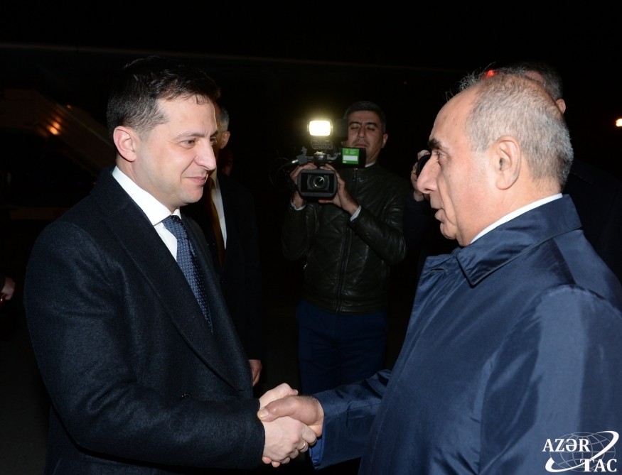 Ukrayna Prezidenti Vladimir Zelenski dekabrın 16-da Azərbaycan Respublikasına rəsmi səfərə gəlib. "Report" xəbər verir ki, hər iki ölkənin dövlət bayraqlarının dalğalandığı Heydər Əliyev Beynəlxalq Aeroportunda Ukrayna Prezidentinin şərəfinə fəxri qarovul dəstəsi düzülüb. Ukrayna Prezidenti Vladimir Zelenskini və xanımı Yelena Zelenskayanı hava limanında Azərbaycan Respublikası Baş Nazirinin Birinci müavini Yaqub Eyyubov, Xarici İşlər nazirinin müavini Xələf Xələfov və digər rəsmi şəxslər qarşılayıblar.