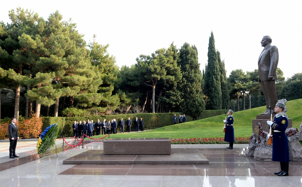 Azərbaycanda rəsmi səfərdə olan Ukrayna Prezidenti Vladimir Zelenski dekabrın 17-də Fəxri xiyabana gələrək xalqımızın ümummilli lideri, müasir müstəqil dövlətimizin memarı və qurucusu Heydər Əliyevin xatirəsini ehtiramla yad edib, məzarı önünə əklil qoyub.
