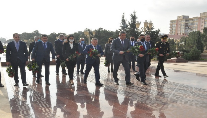 Tədbir iştirakçıları Heydər Əliyev adına parkda Ulu Öndərin abidəsini ziyarət edərək önünə tər çiçək dəstələri düzüb, dahi şəxsiyyətə hörmət və ehtiramlarını bildirdilər.