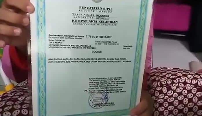 İndoneziyanın cənubunda, Bekasi vilayətində yaşayan ailə yeni doğulmuş körpəsinə maraqlı ad seçib. Belə ki, ailə oğluna “Google” adını verib.